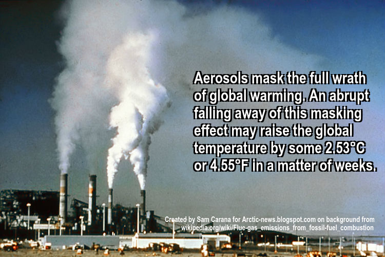 A 2.5°C warming due to removal of part of the aerosols masking effect therefore seems well possible by the year 2026, especially when considering further aerosol impact such as caused by burning of biomass, as discussed in this post.
